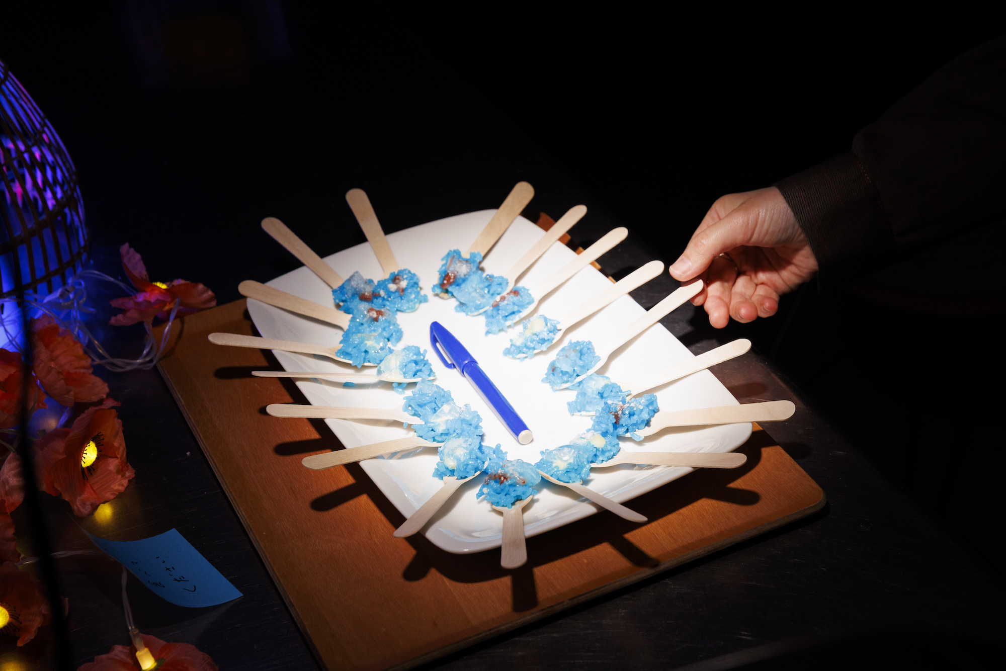 そういえば小学5年生の時に理科の実験で先生が持ってきたご飯をみんなで噛んだな。ご飯を噛み続けるとでんぷんが唾液によって糖になっていくという実験だった。冷ご飯が苦手だったからよく覚えている。そうして宇宙と過去の思い出が一通り過ぎ去り、目を開けると薄暗いキッチンだった。若干の涙目で、宇宙の味がしました、と感想を伝えると、「めっちゃいい感想ですね!」と言っていただけた。すごい体験だったのでぜひ他の人にも味わってほしいと、周りの人に勧めると、何人かの人がキッチンに入っていった。