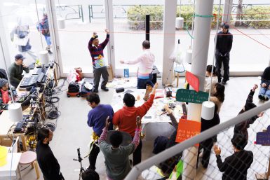 盛りだくさんだった前半のすべてのワークショップが終わった。机や椅子が片付き、すっきりとした大きな窓を中心に、また別の広い空間が立ち上がる。窓の向こうで人々が歩いているのが見える。